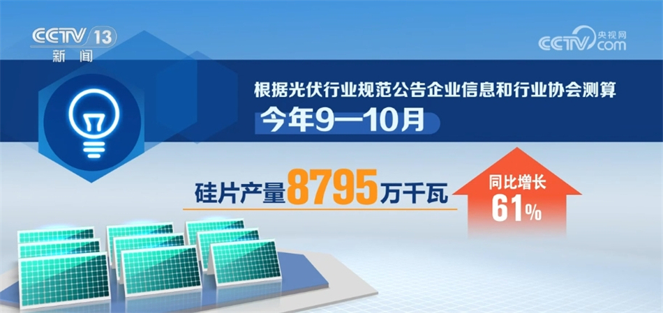 央視網(wǎng)消息:工業(yè)和信息化部12月13日發(fā)布當前全國光伏制造行業(yè)最新運行情況。數(shù)據(jù)顯示,今年9—10月,我國光伏制造業(yè)保持高位運行,硅料、硅片、電池、組件產(chǎn)量同比增長均超60%。