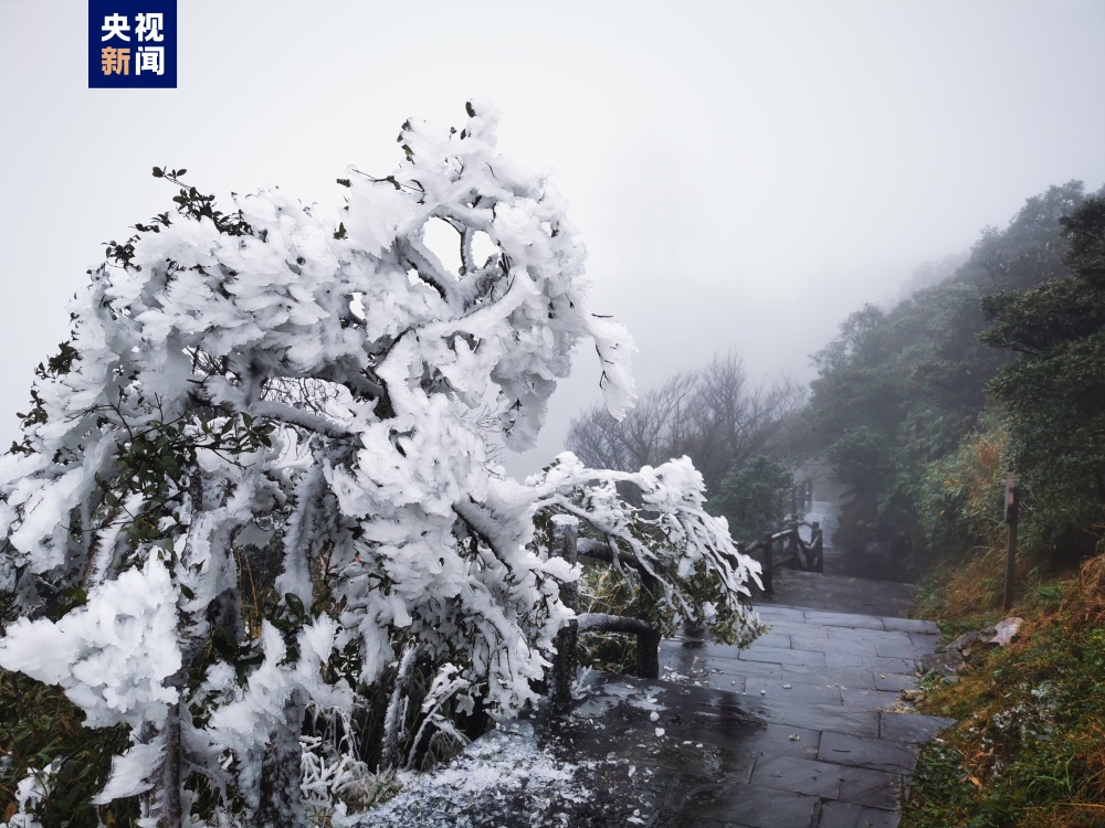 受天氣影響,廣西大明山半山腰出現(xiàn)道路結(jié)冰的情況,請廣大游客注意安全。