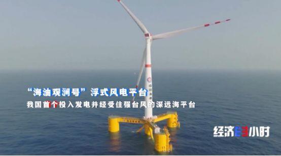 距離海南文昌海岸線136公里的海洋深處,“海油觀瀾號”浮式風(fēng)電平臺迎風(fēng)挺立。這是我國第一個投入發(fā)電并經(jīng)受住強(qiáng)臺風(fēng)的深遠(yuǎn)海風(fēng)電平臺,于今年5月份并網(wǎng)發(fā)電。