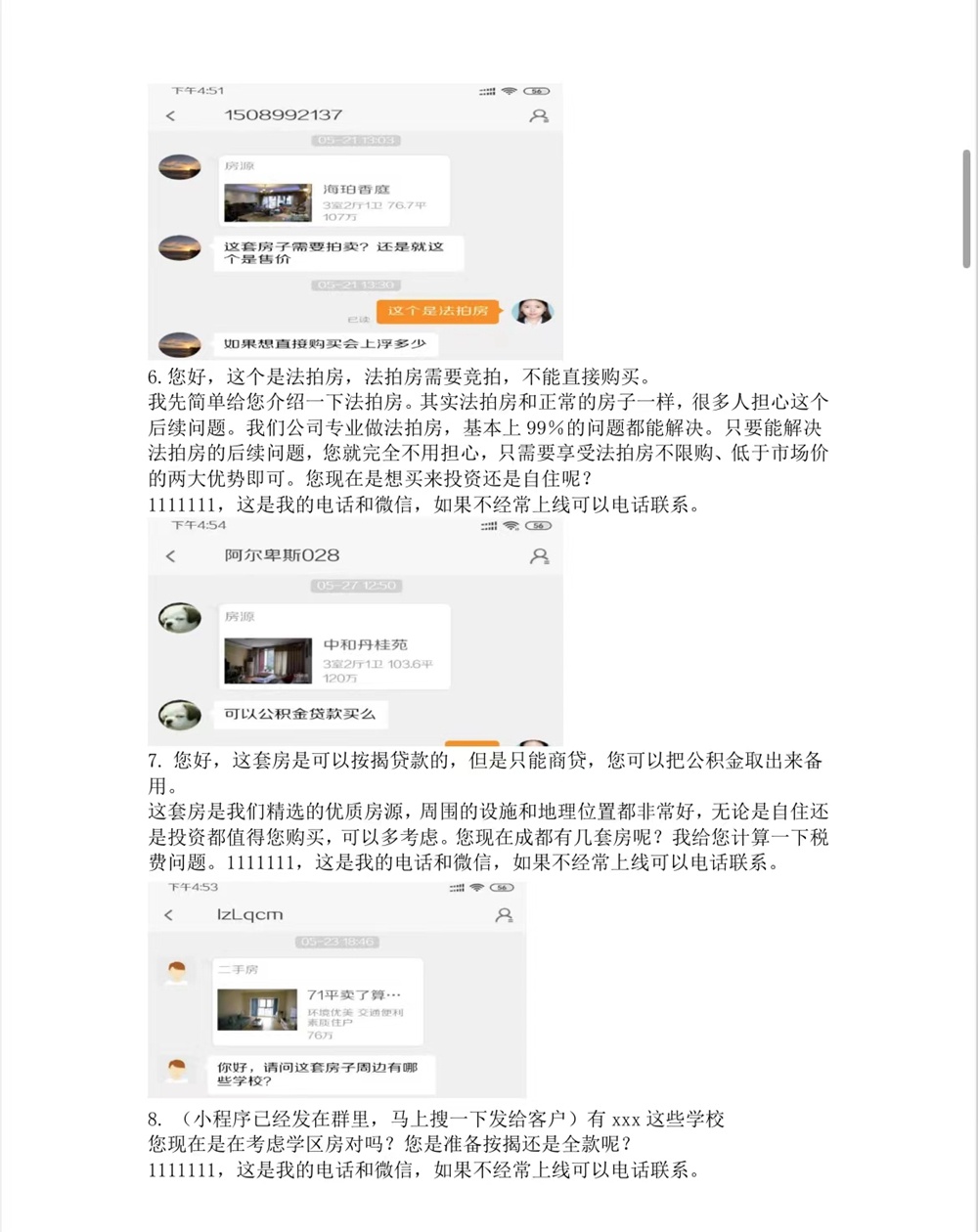 吳先生說,他所在的維權(quán)群里有30多位消費者,盡管大家是與不同中介簽訂的合同,但梳理發(fā)現(xiàn),這些“法拍房中介”前期向客戶推銷時有固定的話術(shù)?!暗谝?,就是說現(xiàn)在很多房子在拍賣;依據(jù)我們的經(jīng)驗,在這一帶,這種類型的房子二十幾萬就能拿下來了;他就告訴你,基本上這個價格不會有什么變化的,你只要跟我們簽約,我們就能幫你服務、幫你拿到?!?/p>