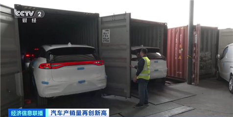 總臺央視記者 寧坤:在廣東深圳一處物流基地的前置倉,一批國產(chǎn)新能源汽車陸續(xù)裝入集裝箱,隨后將通過附近的蛇口港片區(qū)裝船出口發(fā)往東南亞國家。據(jù)了解,這是這家物流公司今年開年以后汽車出口業(yè)務(wù)的第一單。而在剛剛過去的2023年,由于汽車出口業(yè)務(wù)量猛增,他們在這里的倉庫面積短短一年間就擴大了3倍。