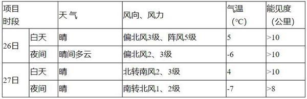 預(yù)計(jì),26日至27日北京天氣以晴為主,其中26日白天有3級(jí)偏北風(fēng),陣風(fēng)5級(jí)左右,27日風(fēng)力不大;其間白天最高氣溫4~5℃,夜間最低氣溫-7~-6℃。具體預(yù)報(bào)見(jiàn)附表: