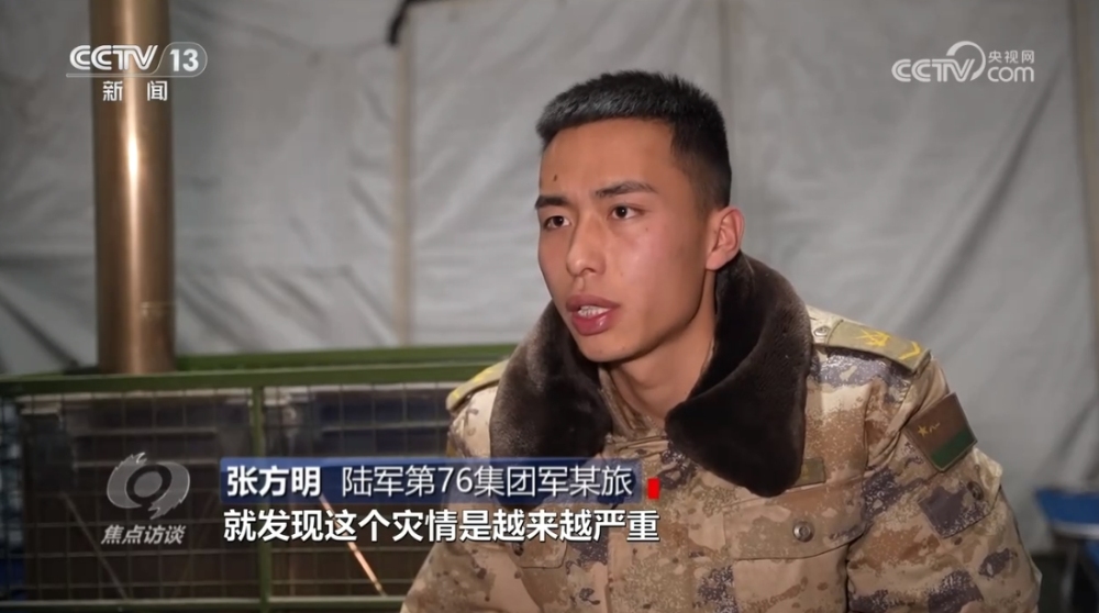 陸軍第76集團(tuán)軍某旅章新禹:“據(jù)我們了解,他家五間房屋全部開裂,家人在院子里面搭了一個帳篷,我們優(yōu)先讓他回去解決自己的事情,然后再返回部隊。”