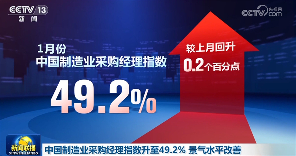 中國(guó)物流與采購聯(lián)合會(huì)、國(guó)家統(tǒng)計(jì)局服務(wù)業(yè)調(diào)查中心1月31日公布,1月份中國(guó)制造業(yè)采購經(jīng)理指數(shù)為49.2%,較上月回升0.2個(gè)百分點(diǎn),結(jié)束了連續(xù)3個(gè)月下降勢(shì)頭,景氣水平有所改善。