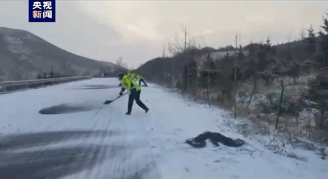 交警部門提示,雪天駕車出行期間做好防滑措施,穩(wěn)駕慢行,保持安全車距,平安出行。(總臺記者 安文劍)