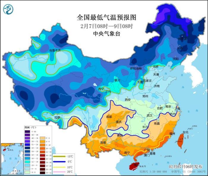 中央氣象臺2月7日06時繼續(xù)發(fā)布低溫藍色預(yù)警