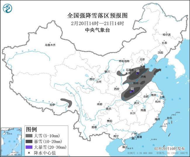 中央氣象臺2月20日10時發(fā)布暴雪黃色預(yù)警: