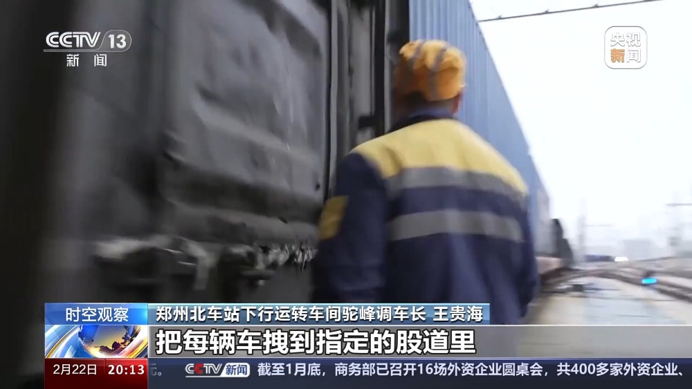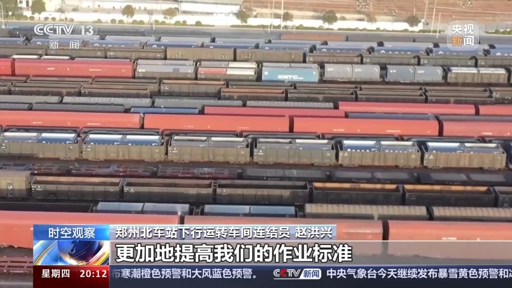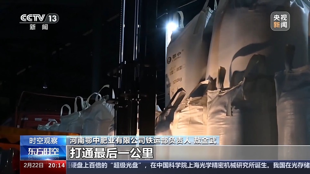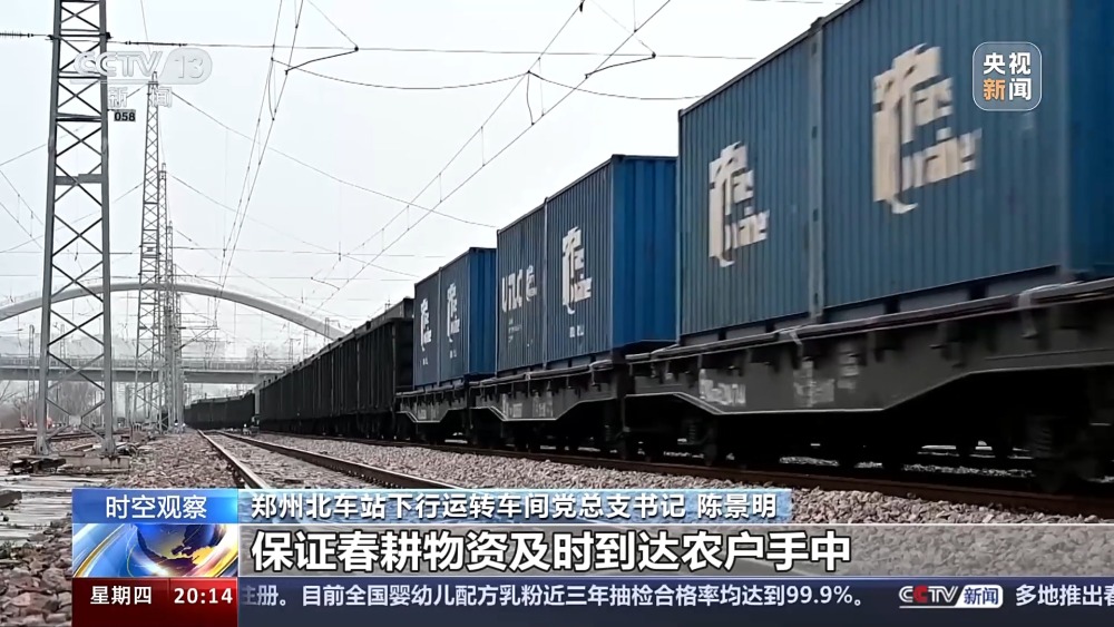 總臺央視記者 蔣樹林:這里是鄭州北車站,也是全國作業(yè)量最大的編組站,大家看我眼前這個車里面裝的就是當下春耕所急需用的化肥原料,作業(yè)還在加班加點地往前推進。