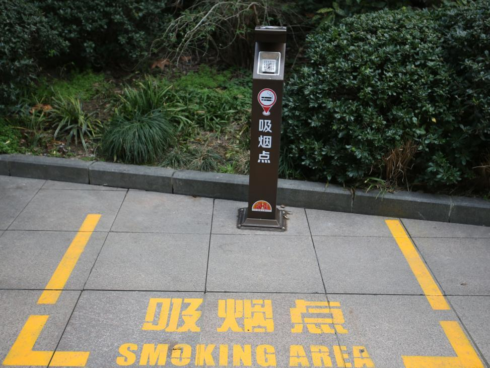 在南京路步行街附近拍攝的室外吸煙點(diǎn)。新華每日電訊記者 辛夢(mèng)晨 攝