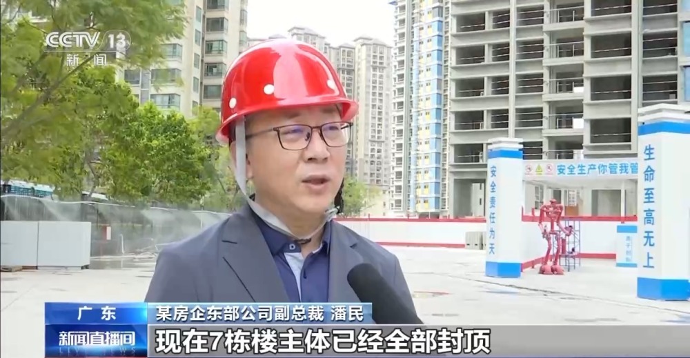 某房企東部公司副總裁 潘民:現(xiàn)在7棟樓主體已經(jīng)全部封頂,正在進(jìn)行批量精裝修階段,我們都是按照計(jì)劃實(shí)施,按合同按合約交付,第一批次是在2025年的8月份交付。