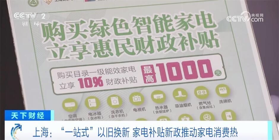 央視網(wǎng)消息:日前,國務(wù)院印發(fā)《推動大規(guī)模設(shè)備更新和消費品以舊換新行動方案》,明確實施消費品以舊換新行動。上海市從3月30日起實施新一輪綠色智能家電消費補貼政策,對16大類一級能效家電產(chǎn)品進行補貼,各大商超賣場也推出“一站式”以舊換新、延伸局部改造等補貼及服務(wù)。