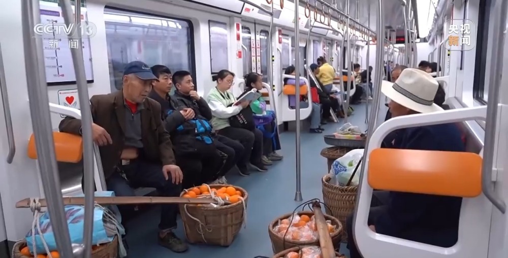 石船鎮(zhèn)位于重慶市渝北區(qū)東部,離市區(qū)路程有40多公里。2022年6月,重慶軌道交通4號(hào)線石船站開(kāi)通運(yùn)營(yíng)后,石船站就設(shè)在不到兩公里外的村口。現(xiàn)在兩位老人步行最多半小時(shí),就可以到達(dá)地鐵站。同時(shí),按照當(dāng)?shù)氐恼?,重慶市行政區(qū)域內(nèi),年滿65周歲的老人,可以免費(fèi)乘坐地鐵。像馮忠福夫妻一樣,搭乘地鐵去市區(qū)賣菜賣水果的村民開(kāi)始多了起來(lái),慢慢地,4號(hào)線被大家親切稱為“背簍專線”。
