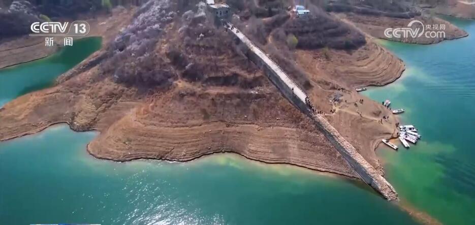 您現(xiàn)在看到的是位于河北省寬城滿族自治縣境內(nèi)的潘家口水庫“水下長城”。長城內(nèi)外,漫山遍野的山杏花悄然綻放,在春風(fēng)中爭芳斗艷,時(shí)而飄來陣陣花香。春日里,盛開的杏花、碧綠的湖水與巍峨的長城交相輝映,形成了剛?cè)嶂赖耐昝廊诤?,?gòu)成一幅絕美的畫卷,吸引了眾多游客登上長城前來賞花踏青。