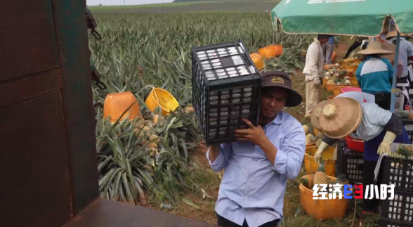 種植大戶朱學(xué)帝家的110畝菠蘿依次成熟,這天收割的5萬斤菠蘿要在太陽下山前發(fā)往甘肅蘭州。為了搶工,工人們從早上6點(diǎn)鐘干到下午四五點(diǎn)鐘,雖然很累,但是豐產(chǎn)不愁賣的紅火局面還是讓他們心里樂開了花。