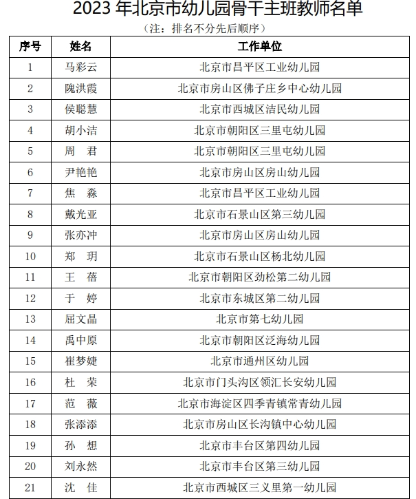 2023年北京市中小學(xué)骨干班主任、幼兒園骨干主班教師名單公布