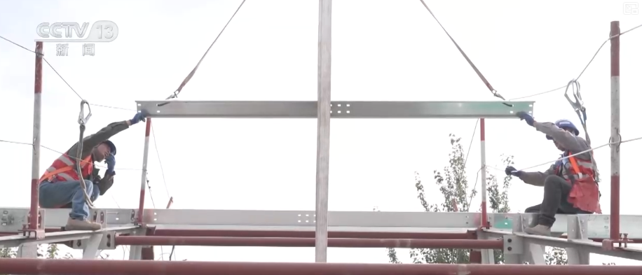 借助這種鋼結構屋頂,改造團隊這次實現(xiàn)了“分段流水作業(yè)”和“預制式裝配”等施工工藝,使得單棟樓的屋面施工周期從以前的2個月壓縮到了僅需20天左右?,F(xiàn)場,幾名工人像“搭積木”一樣,不到一上午的時間就能搭好這樣一組鋼結構的房架。