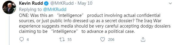 5月10日,陸克文在社交媒體再次連發(fā)五問,質(zhì)疑可能參與此次“甩鍋中國(guó)”事件的各方。他的第一問稱,這所謂的15頁(yè)“情報(bào)”,究竟是源于真實(shí)的絕密情報(bào),還是根據(jù)公開信息拼湊而成?他表示,“伊拉克戰(zhàn)爭(zhēng)的教訓(xùn)早已告誡媒體,必須謹(jǐn)慎對(duì)待所謂的‘情報(bào)’,以防陷入某種政治目的之中?!?/p>