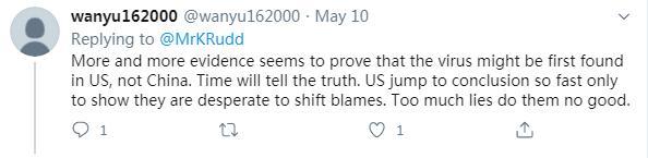 也有網(wǎng)友說,“越來越多的證據(jù)似乎證明,該病毒首先出現(xiàn)在美國(guó),而不是中國(guó)?!薄懊绹?guó)如此迅速地得出結(jié)論,只是表明他們迫切希望轉(zhuǎn)移責(zé)任?!?/p>