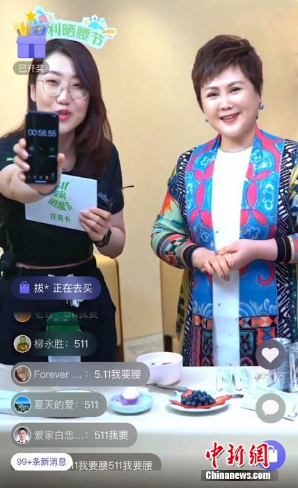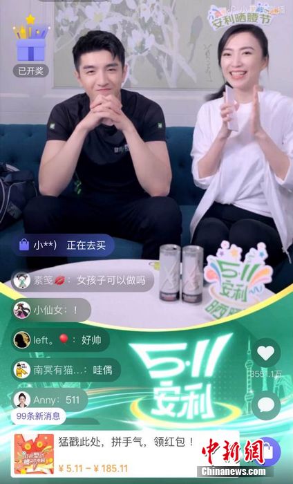 安利(中國)總裁余放(右一)參與直播互動