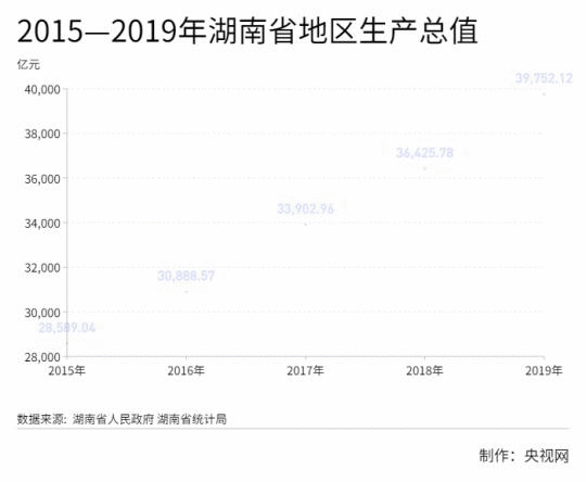 2019年,湖南地區(qū)生產(chǎn)總值接近4萬億元,達(dá)39752.12億元,按不變價格計(jì)算,比上年增長7.6%,符合7.5%—8%的預(yù)期目標(biāo)。