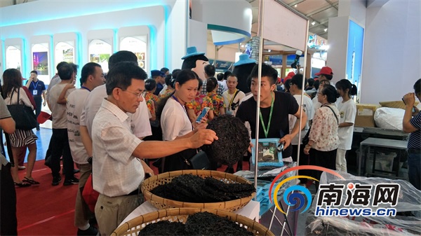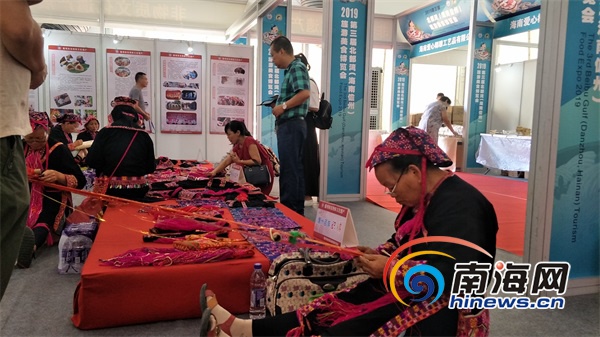 游客在2019第三屆北部灣(海南儋州)旅游美食博覽會(huì)展區(qū)參觀(guān)。南海網(wǎng)見(jiàn)習(xí)記者 李紹遠(yuǎn) 攝