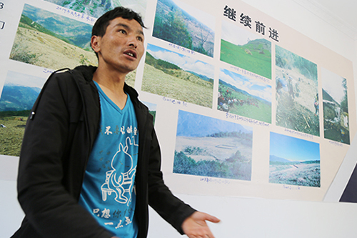 同樂村感恩連連長和生向記者介紹感恩連情況。人民網(wǎng) 宋晨攝