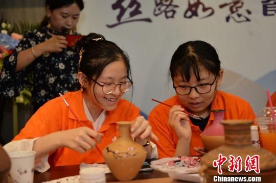 6月28日,甘肅首家絲路如意餐廳正式向公眾亮相,餐廳內(nèi)還舉行了“絲路文化小課堂”,孩子們正在給陶坯涂色。 鐘欣 攝