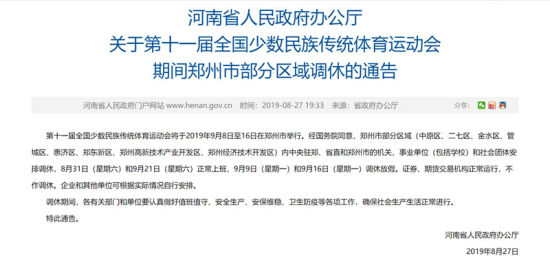 第十一屆全國少數(shù)民族傳統(tǒng)體育運(yùn)動會期間鄭州部分區(qū)域調(diào)休