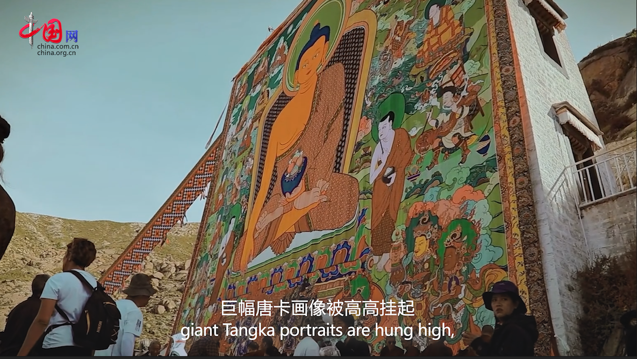 每逢雪頓節(jié)之時(shí),巨幅唐卡畫像被高高掛起,展露容顏。