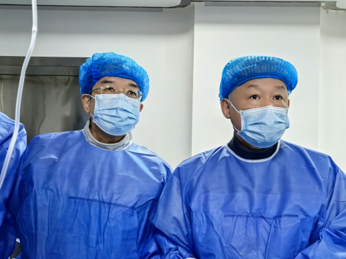 義診現(xiàn)場?。⊥鮽ッ窠淌谂c張大東教授為確診患者實(shí)施介入手術(shù)