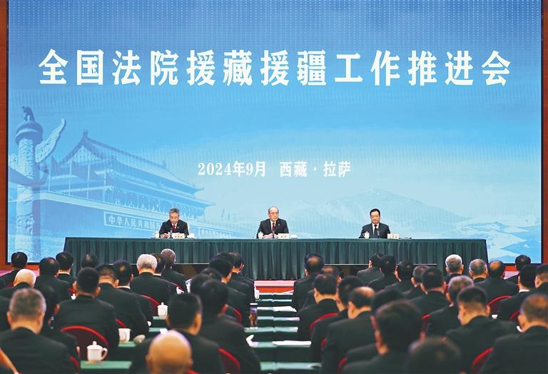 王君正表示,新時(shí)代新征程,推進(jìn)中國(guó)式現(xiàn)代化西藏實(shí)踐,既需要西藏各族人民持之以恒艱苦奮斗,更離不開(kāi)黨中央的親切關(guān)懷和全國(guó)人民的大力支持。希望最高法繼續(xù)加強(qiáng)對(duì)西藏法院工作的指導(dǎo)幫助,全國(guó)法院系統(tǒng)進(jìn)一步加大援藏工作力度,提升西藏法院工作整體水平。西藏將堅(jiān)持以習(xí)近平新時(shí)代中國(guó)特色社會(huì)主義思想為指導(dǎo),堅(jiān)持用習(xí)近平總書(shū)記關(guān)于西藏工作的重要指示和新時(shí)代黨的治藏方略統(tǒng)攬工作全局,認(rèn)真貫徹落實(shí)第四次對(duì)口支援西藏工作會(huì)議精神,總結(jié)經(jīng)驗(yàn)、再接再厲,積極推動(dòng)法院系統(tǒng)援藏工作不斷取得新成效,努力建設(shè)社會(huì)主義現(xiàn)代化新西藏。