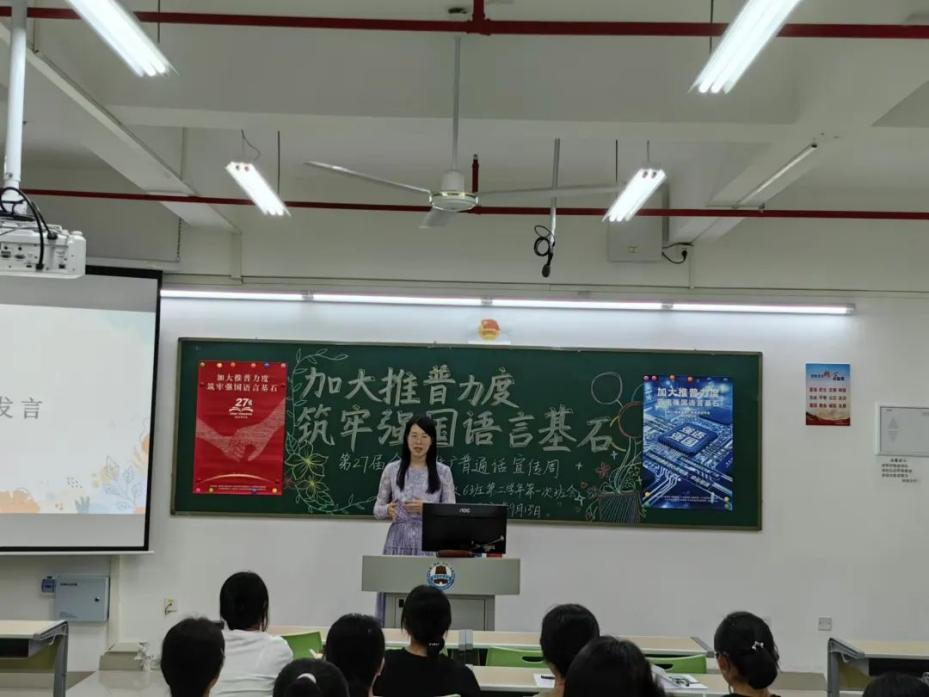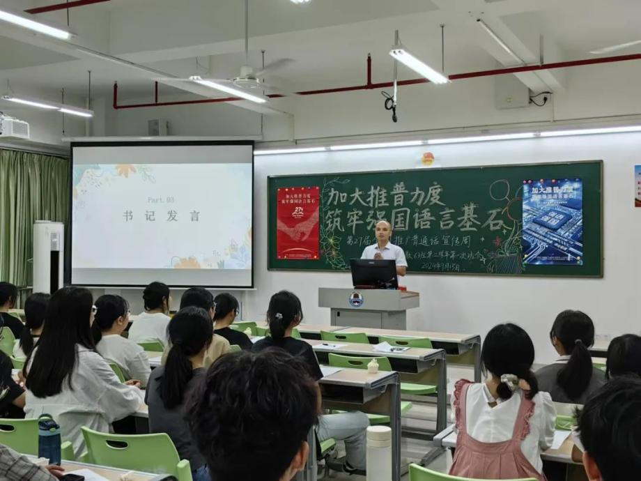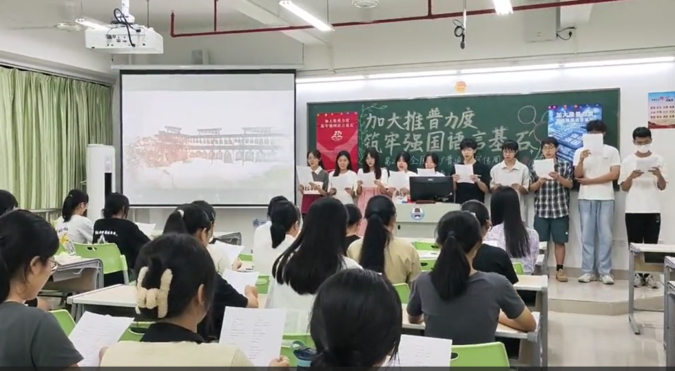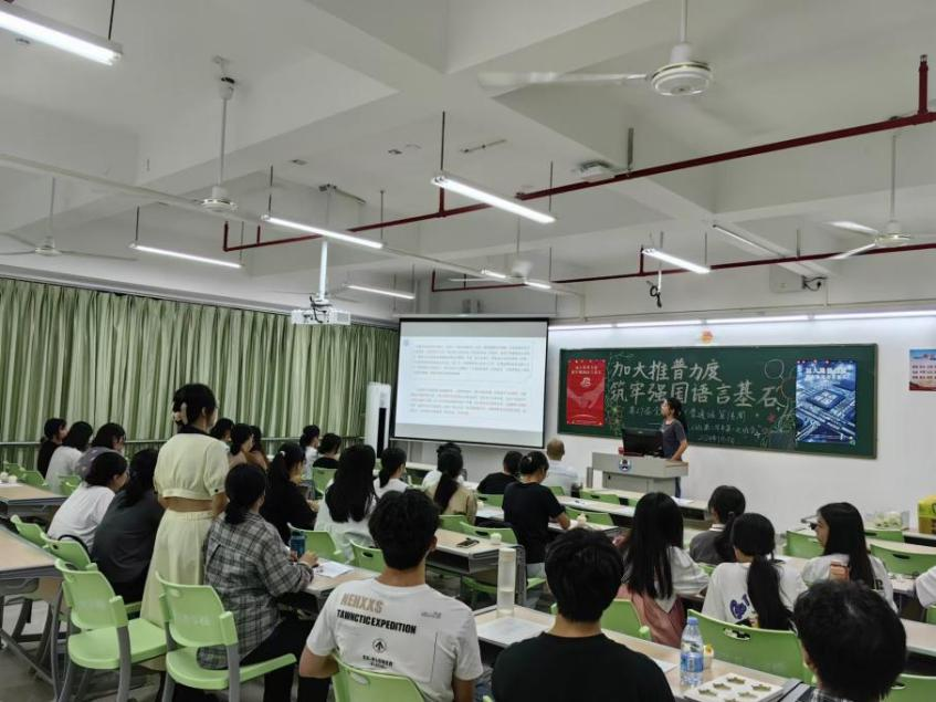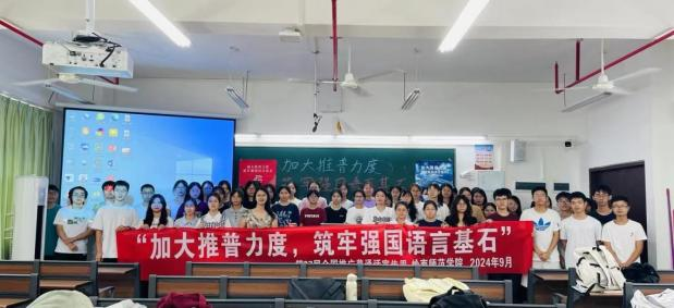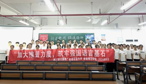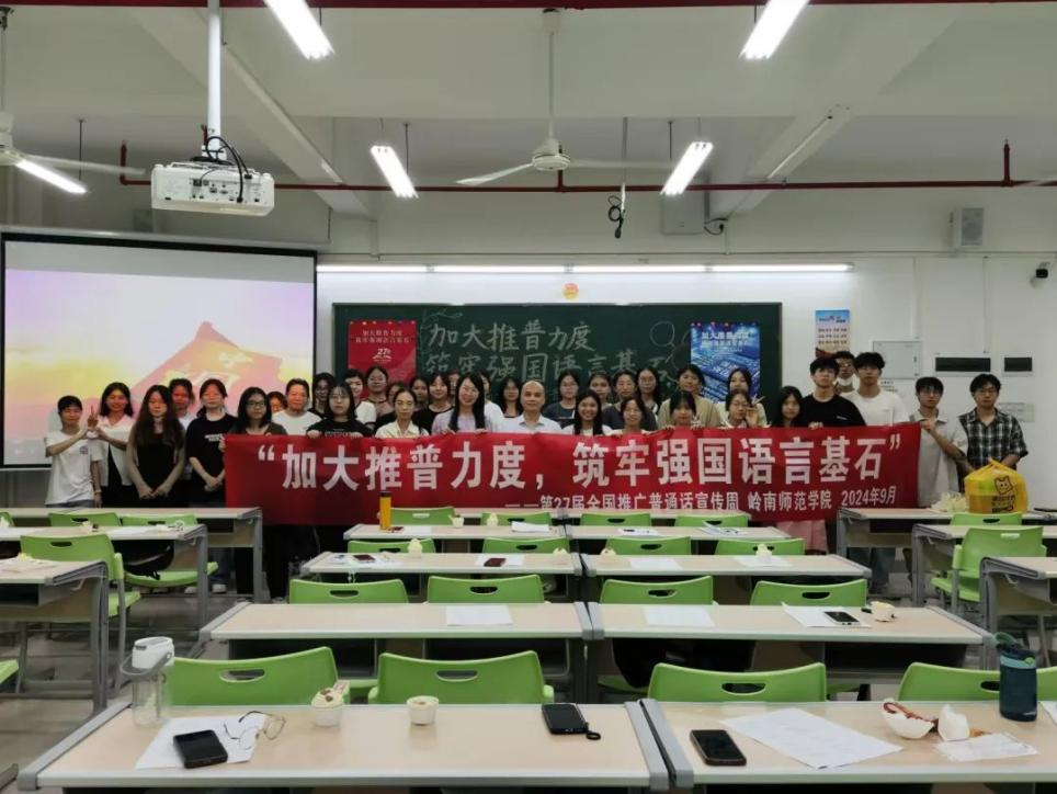 新時代教育高質(zhì)量發(fā)展的浪潮中,加強(qiáng)國家通用語言文字教育是提升國民素質(zhì)、促進(jìn)文化認(rèn)同、推動社會進(jìn)步的重要基石。嶺南師范學(xué)院積極響應(yīng)國家關(guān)于加強(qiáng)國家通用語言文字推廣普及的號召,圍繞“加大推普力度,筑牢強(qiáng)國語言基石”第27屆全國推普周主題,依托學(xué)?!督處熣Z言》課程組,成功舉辦了一系列豐富多彩、特色鮮明的語言文化活動,不僅彰顯了學(xué)院在師范教育領(lǐng)域的深厚底蘊(yùn)與創(chuàng)新活力,更為國家語言文字建設(shè)和教育強(qiáng)國戰(zhàn)略貢獻(xiàn)了重要力量。