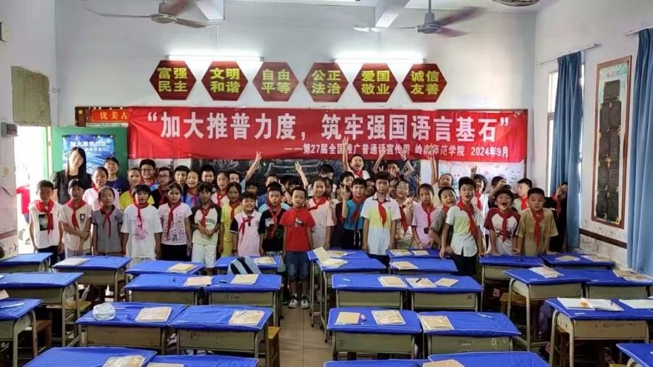 教育強(qiáng)國戰(zhàn)略背景下,為培養(yǎng)未來教育領(lǐng)軍人才、助力鄉(xiāng)村振興與邊疆教育發(fā)展,嶺南師范學(xué)院《教師語言》課程組十分重視師范生職業(yè)技能教育實(shí)踐。9月13日—9月18日,通過組織師范實(shí)習(xí)生、援藏支教實(shí)習(xí)生及扎根鄉(xiāng)村教育的畢業(yè)生積極參與各類推普活動,促進(jìn)了國家通用語言文字的廣泛普及,深刻體現(xiàn)了教育公平與文化傳承的時代價值。