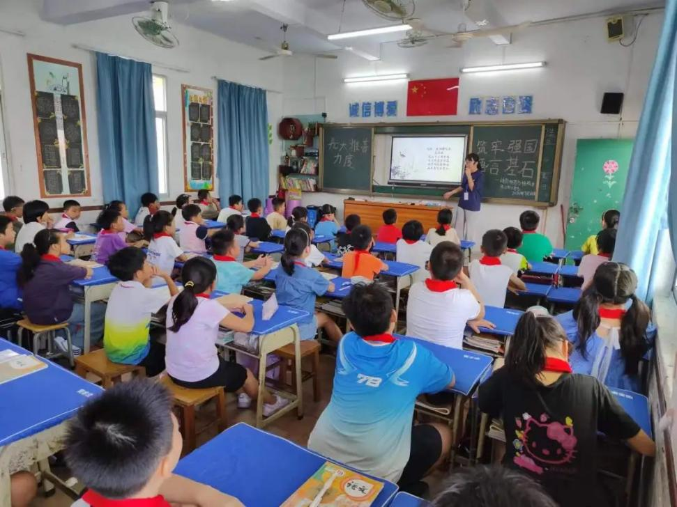 湛江市第四小學(xué)實(shí)習(xí)生戴鈺瑩指導(dǎo)學(xué)生誦讀紅色經(jīng)典現(xiàn)場