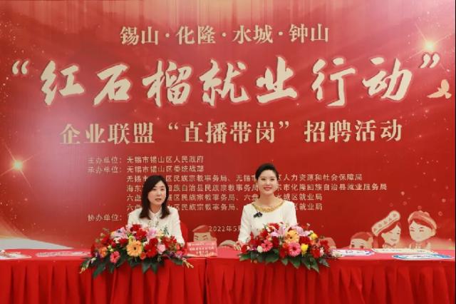 江蘇深入實(shí)施“紅石榴”就業(yè)行動。截至今年7月,全省13個設(shè)區(qū)市的410家企業(yè)累計(jì)面向民族地區(qū)各族群眾提供3.45萬個就業(yè)崗位。圖為江蘇省無錫市錫山區(qū)與貴州省六盤水市水城區(qū)、鐘山區(qū),青海省海東市化隆回族自治縣通過網(wǎng)絡(luò)平臺舉行“紅石榴就業(yè)行動”合作簽約暨企業(yè)聯(lián)盟“直播帶崗”招聘活動。江蘇省民族宗教事務(wù)委員會供圖