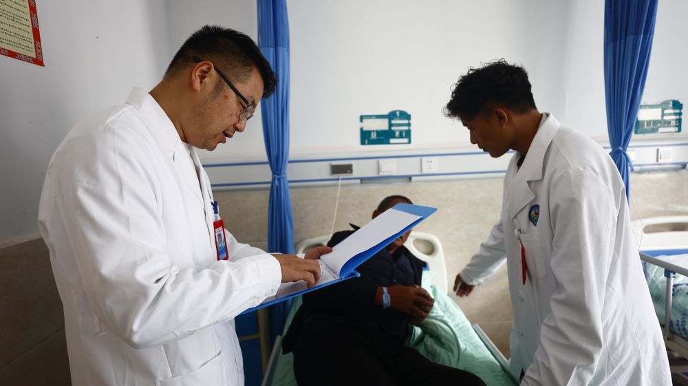 向桂林是一名援藏醫(yī)生,2023年3月,他從重慶市萬州區(qū)來到西藏自治區(qū)昌都市察雅縣開展醫(yī)療援藏工作。在察雅的一年半里,向桂林和隊員們參加了一百多次義診和下鄉(xiāng)指導(dǎo),累計接診門診患者1000余人次、救治住院患者400余人次,開展手術(shù)35臺,申報新技術(shù)10項。今年國慶,向桂林選擇繼續(xù)留守工作崗位?!爸荒茉谝曨l通話里和家人團(tuán)聚了。但這是我們的責(zé)任更是一種榮譽。”向桂林說。