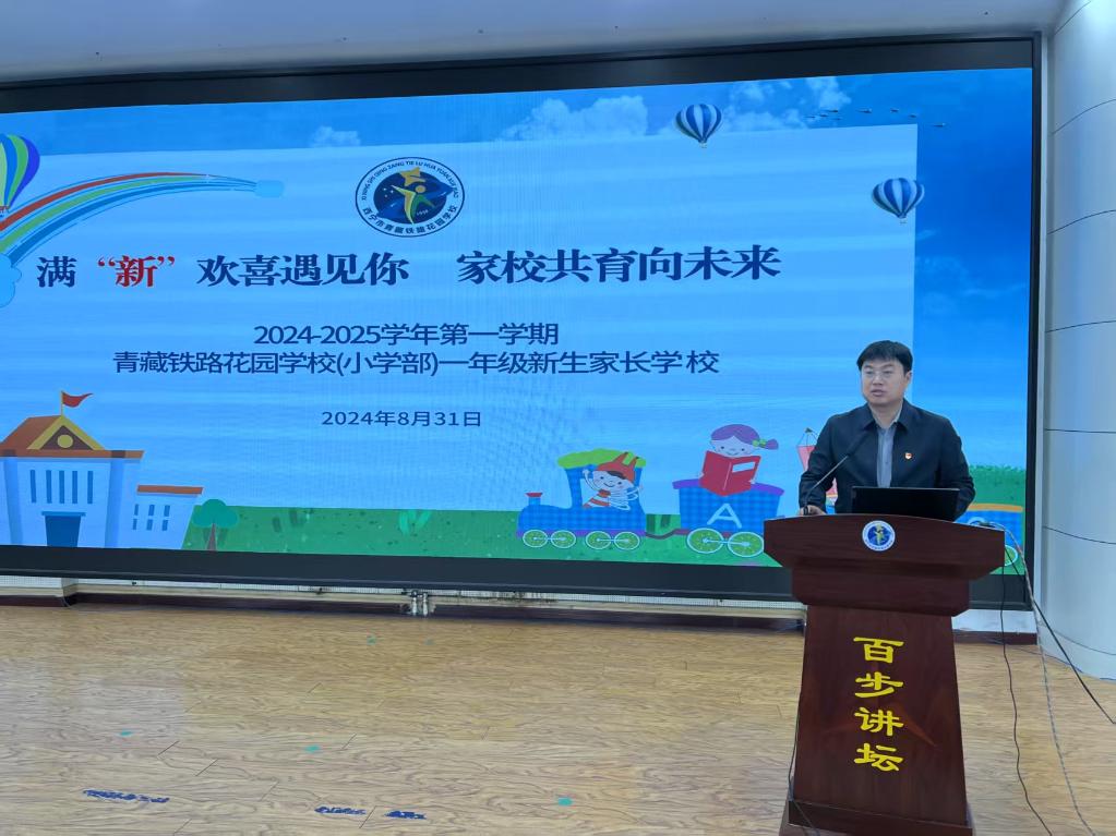 江蘇援青干部、青藏鐵路花園學(xué)校副校長許健在學(xué)校召開家長會(huì)。(受訪者供圖)