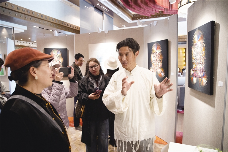 開幕儀式上,亞東縣委常務(wù)副書記、常務(wù)副縣長,上海市第十批援藏干部人才亞東聯(lián)絡(luò)小組組長李夏陽在致辭中表示,三十年間,在多批援藏干部的不懈努力與無私奉獻(xiàn)下,亞東縣在穩(wěn)定、發(fā)展、生態(tài)、強(qiáng)邊等各項(xiàng)工作上都取得了顯著成效,對(duì)本次參展藝術(shù)家們?yōu)閬問|縣文化傳播的傾情助力,致以誠摯的感謝。藝術(shù)家索喃次仁表示,未來將持續(xù)致力于將傳統(tǒng)技藝與現(xiàn)代審美融合,讓古老手工藝煥發(fā)新生,以藝術(shù)賦能助力鄉(xiāng)村振興。