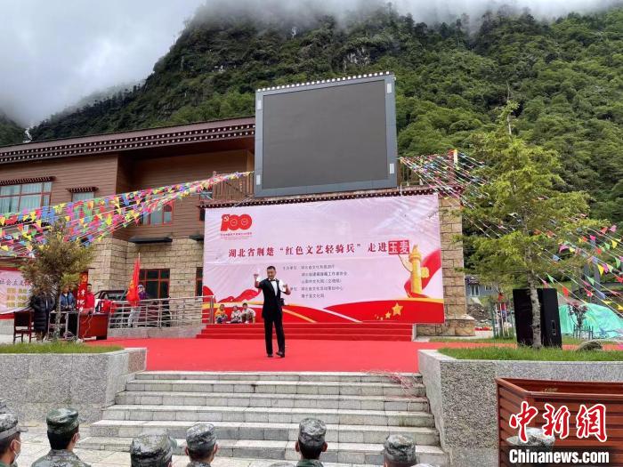 湖北省荊楚“紅色文藝輕騎兵”在山南市玉麥鄉(xiāng)慰問演出。湖北省文化和旅游廳供圖