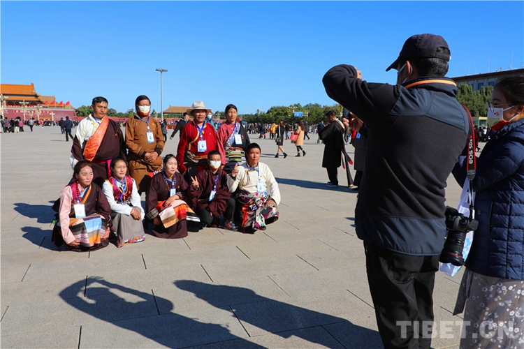 圖為部分西藏基層干部在天安門(mén)廣場(chǎng)合影留念 攝影:柳文婷