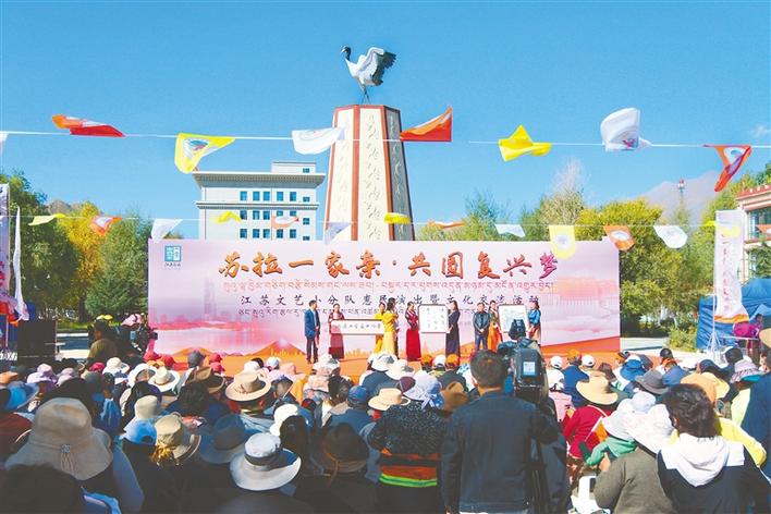 為增進江蘇、西藏兩地人民文化交流,促進民族團結(jié),共同鑄牢中華民族共同體意識,由江蘇省委宣傳部、拉薩市委宣傳部、江蘇援藏前方指揮部、江蘇省文聯(lián)主辦,拉薩市文聯(lián)、拉薩市文化局、拉薩融媒、江蘇援藏對口縣區(qū)承辦的“蘇拉一家親·共圓復興夢”惠民演出暨文化交流活動于10月13日至19日在拉薩開展。本次惠民演出包含歌曲、舞蹈、木偶、魔術等,通過非物質(zhì)文化遺產(chǎn)藝術和現(xiàn)代藝術的碰撞,展示了蘇藏兩地特色藝術文化,促進交往交流交融。