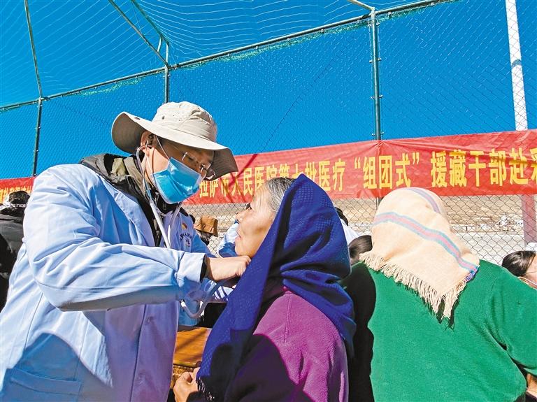 圖為近日,北京第七批組團(tuán)式援藏醫(yī)療隊(duì)前往羊八井彩渠塘村開(kāi)展慰問(wèn)、義診送藥活動(dòng)現(xiàn)場(chǎng)。記者 索朗瓊珠 次仁片多 攝