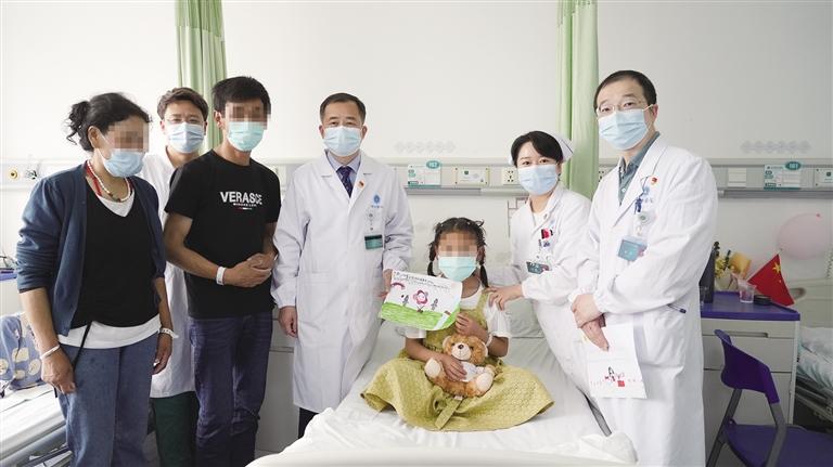先心病患兒與武漢協(xié)和專(zhuān)家合影。