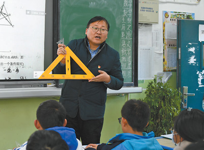 繁忙的管理工作以外,吳智勇主動承擔了初二年級一個班的數(shù)學教學工作。每個學期,他都會收兩到三名教師作“徒弟”,他說:“我會查看他們的教學計劃、教學備課材料,盡量多聽他們的課,并在課后進行輔導(dǎo)?!敝灰挥锌眨€會隨機聽本地教師講的數(shù)學課,課后進行交流。
