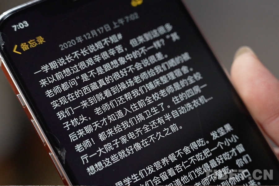 當(dāng)吳穎琦被問(wèn)到為什么再次選擇西藏,我看見(jiàn)了她眼里充滿(mǎn)的熱愛(ài)和期待?!拔移鋵?shí)也說(shuō)不清楚為什么想留下,只是如果不這么做,我怕自己會(huì)遺憾,總覺(jué)得還能為這片土地做更多?!边@是她手機(jī)備忘錄里的一句話(huà)。