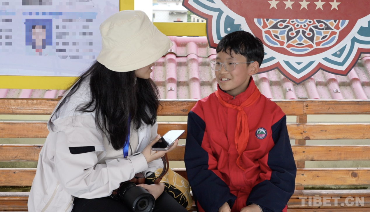 圖為2025年3月,本文作者(左)正在西藏林芝墨脫縣完全小學(xué)采訪(fǎng)