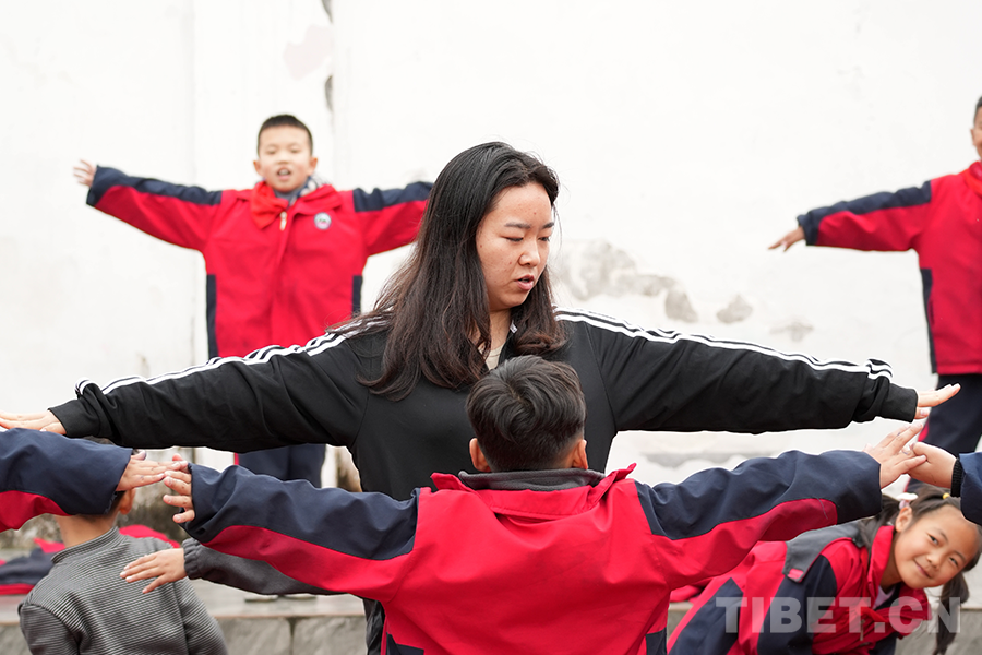 時(shí)值下午四點(diǎn),學(xué)校操場(chǎng)上正好有兩個(gè)方隊(duì)的學(xué)生在上體育課,他們各自在老師的帶領(lǐng)下集合熱身、跑圈、進(jìn)行趣味活動(dòng)。墨脫氣候潮濕,空氣里悶著一股勁兒,大雨似落未落,但絲毫不影響孩子們上體育課的心情,因?yàn)檫\(yùn)動(dòng)總會(huì)激起他們無(wú)限的熱情。