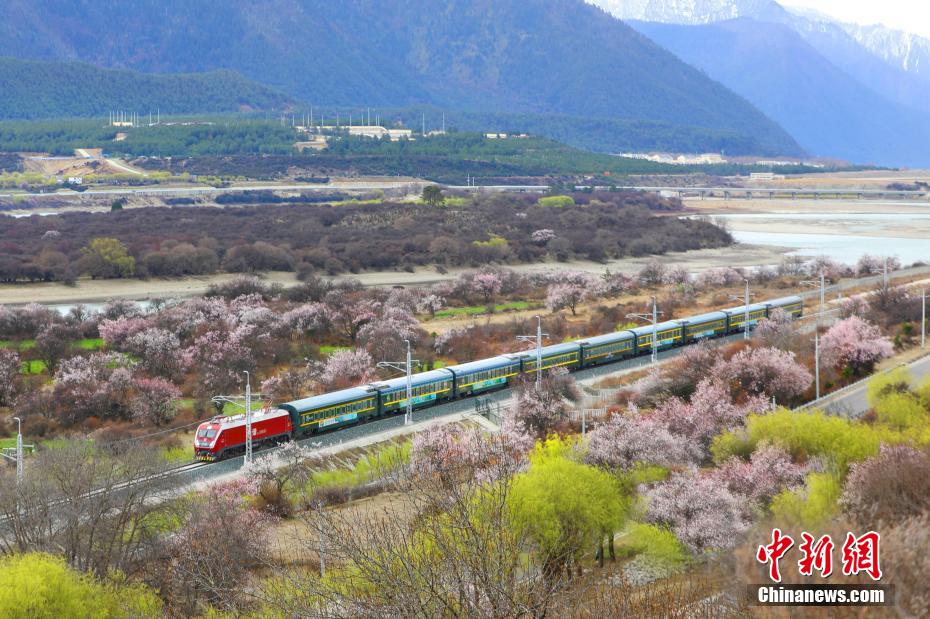 被譽(yù)為新“天路”的拉林鐵路,是中國首條高原電氣化鐵路,于2021年6月25日開通運(yùn)營,結(jié)束了西藏東南地區(qū)不通鐵路的歷史。圖為拉林鐵路沿線桃花盛開,與飛馳而過的動車構(gòu)成別樣風(fēng)景圖。