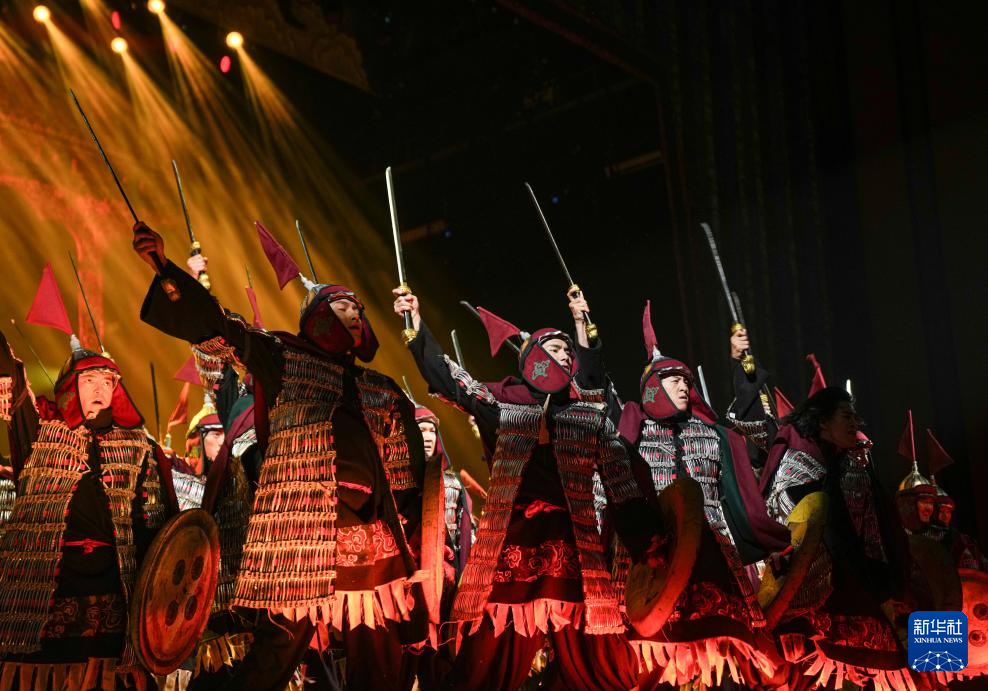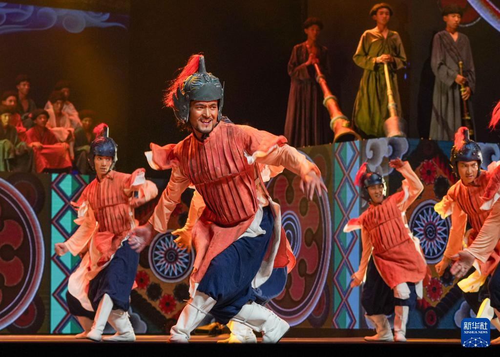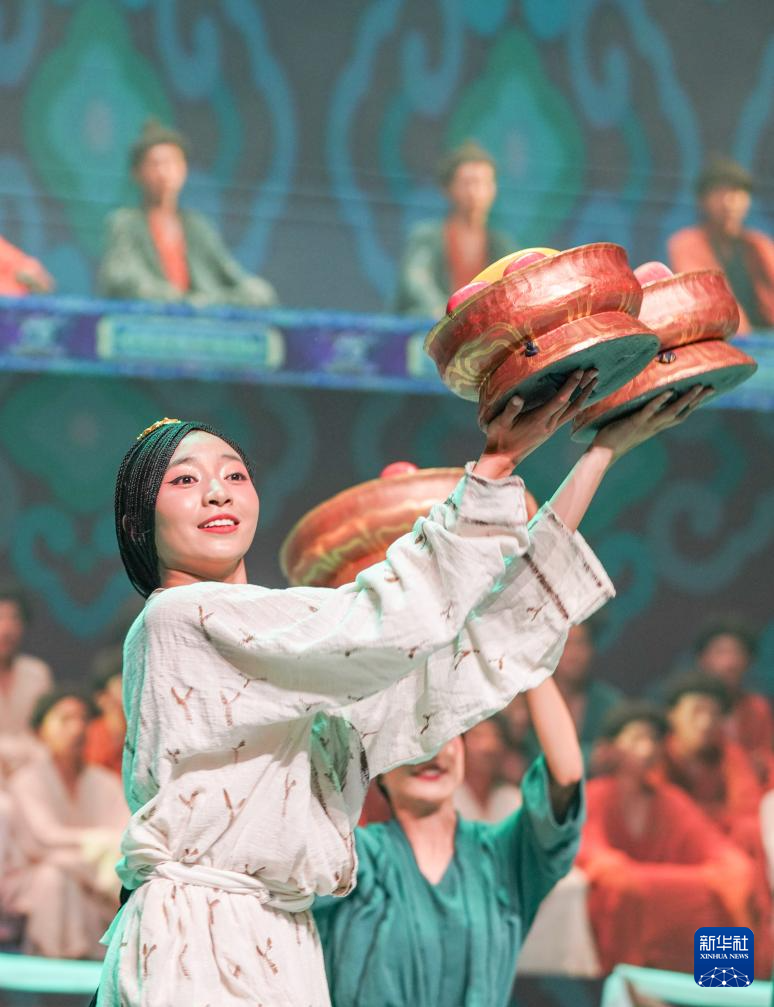 7月19日,在西藏拉薩《緣起象雄·古格遺風(fēng)》情景歌舞詩演出現(xiàn)場(chǎng),演員在表演節(jié)目《鼓樂喧天》。新華社記者 晉美多吉 攝