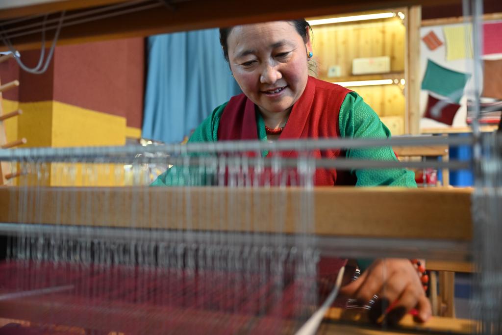 走進江孜縣阿佳格桑氆氌農民專業(yè)合作社,織機“咔嗒”作響,氆氌的紋理在手工藝人的手中逐漸顯現(xiàn),她們用自己的雙手編織出了更加美好的未來。